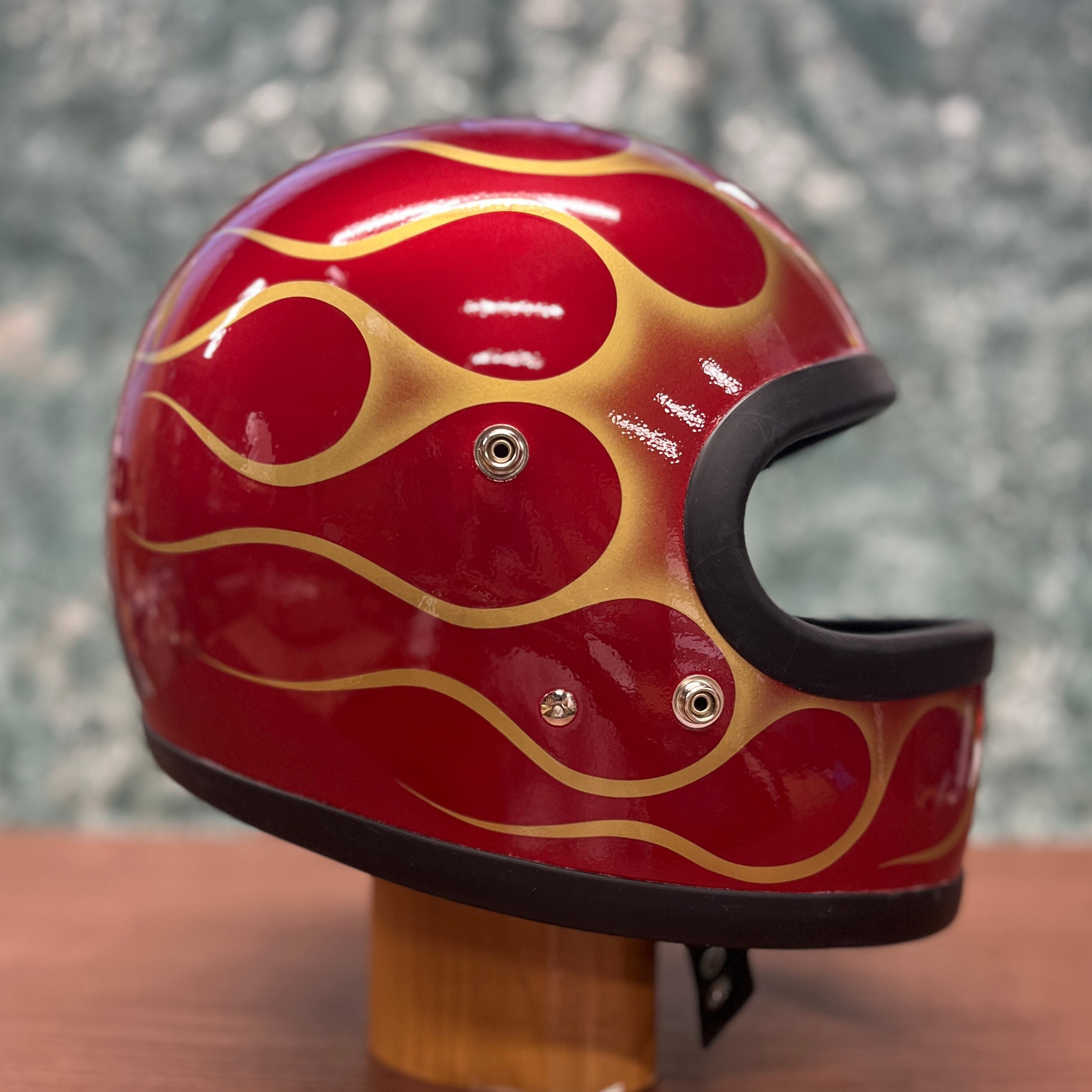【OCEANBEETLE】STR【Crimson Blaze】が新登場!深みのある赤と金のフレイムスが映えるデザインが、アメリカンな熱気とクラシック感を兼ね備えています。このヘルメットを装着することで、かっこよさとともに、ライディングのスタイルを一層引き立ててくれることでしょう。